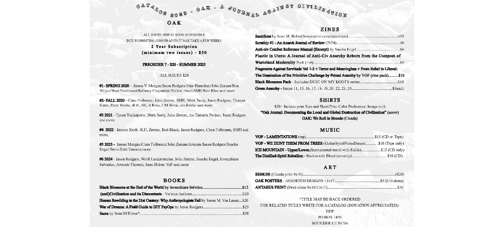 A reissue of the John Zerzan Reader, with a new introduction by Steve Kirk. Put out by HDP. 5x7 249 pages. Includes classic essays from Elements of Refusal and Future Primitive -- and many others.